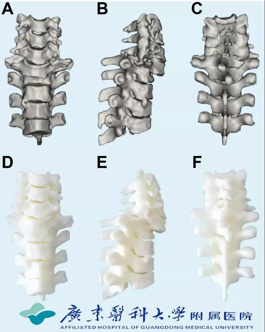 脊柱微创外科主任魏波,副主任孙欣,彭智恒、黄维渊博士,郑锦畅副主任医师,黄成硕主治医师,梁振医师通过3D技术重建患者颈椎序列(如图2所示),全面研究骨折及脱位情况,充分讨论患者病情,分析手术难点,最后设计出“前-后-前”联合的颈椎椎体脱位复位固定方案。