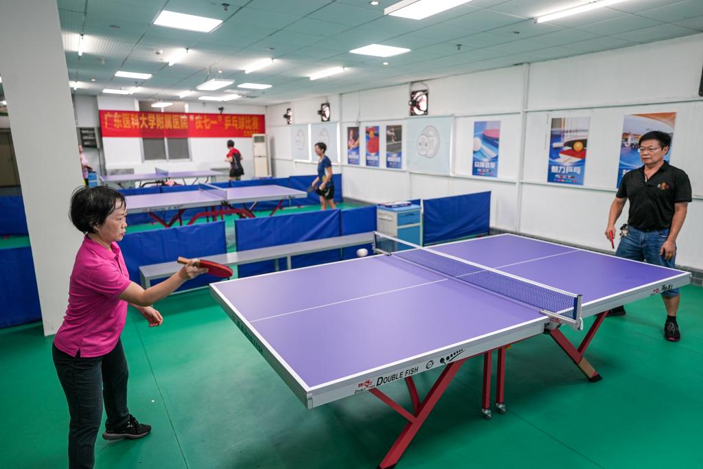 领导嘉宾体验“职工之家”乒乓球室
