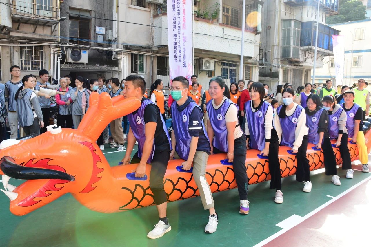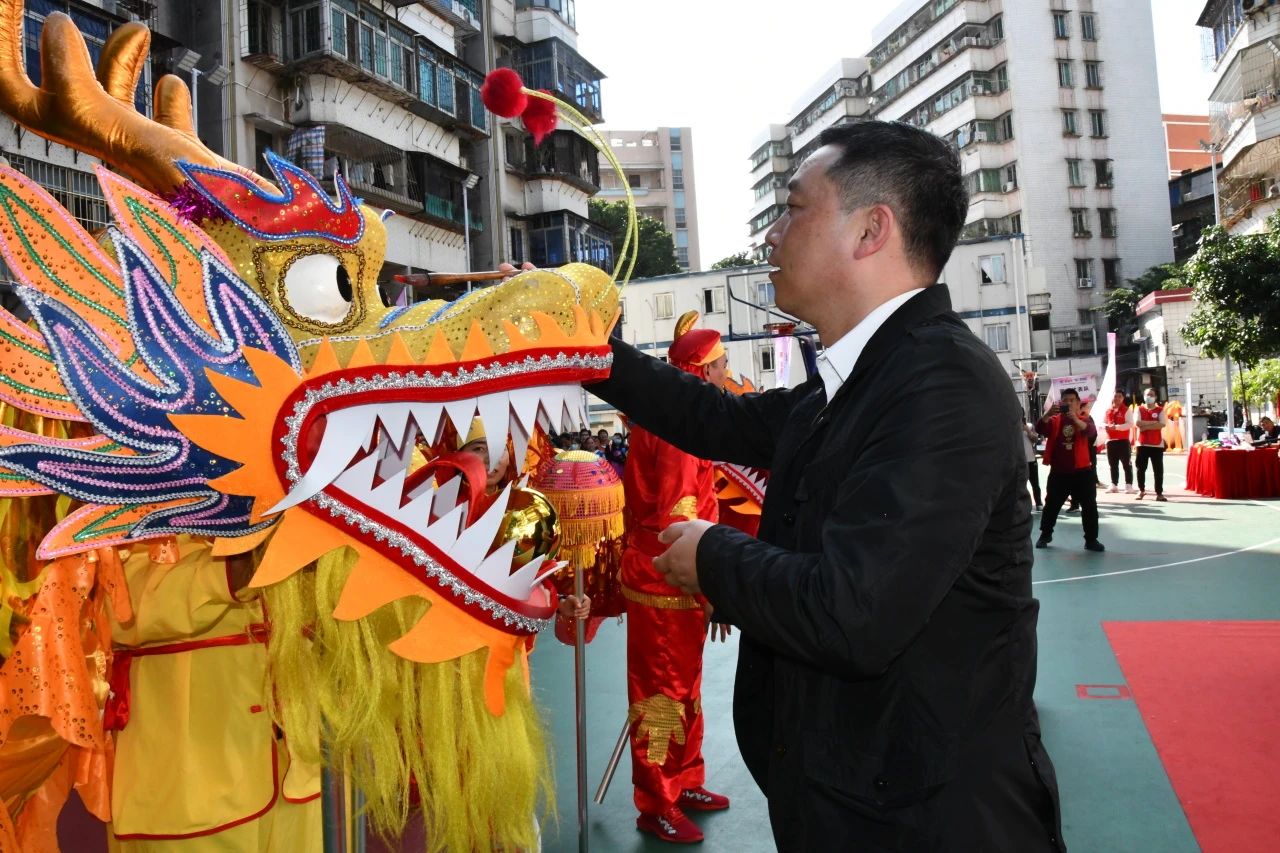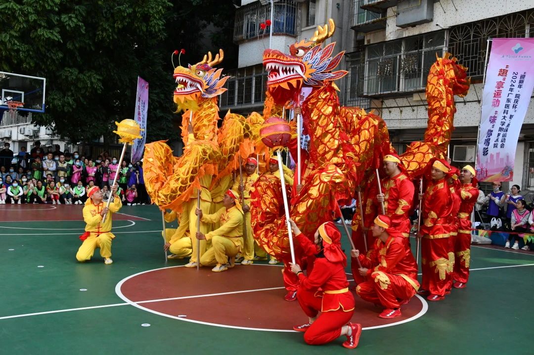 在开场节目环节,由湛江市总工会党组成员、副主席朱凌静,广东医科大学工会专职副主席李黎为舞龙点睛