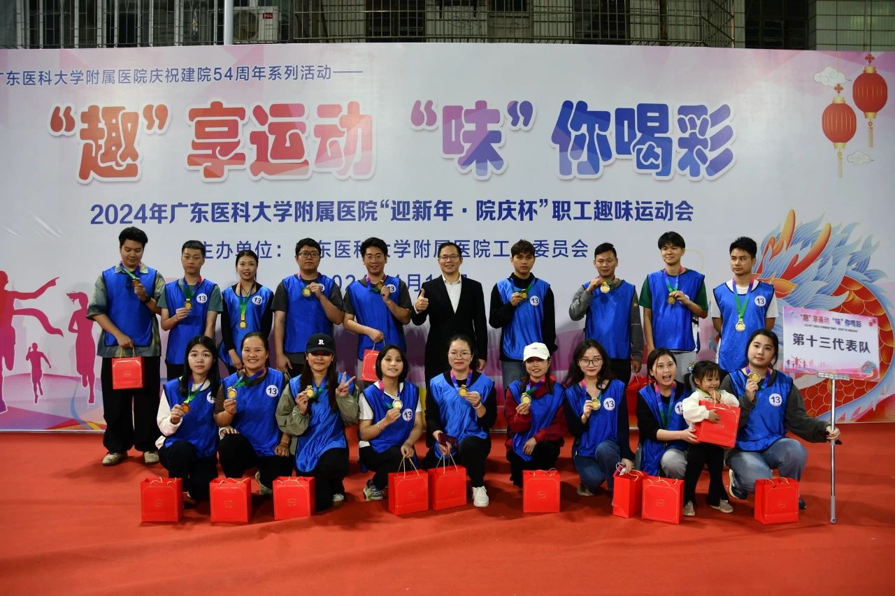 随后,医院党委书记蔡定彬现场宣布:“广东医科大学附属医院庆祝建院54周年系列活动之2024年‘迎新年·院庆杯’职工趣味运动会开幕!”