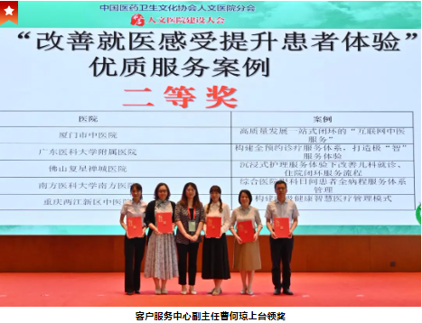 2024年5月10日至12日由中国医药卫生文化协会人文医院分会和《医学参考报医院人文专刊》主办的第二届人文医院建设大会在石家庄举行。广东医科大学附属医院荣获2024年“改善就医感受提升患者体验”优质服务案例二等奖。