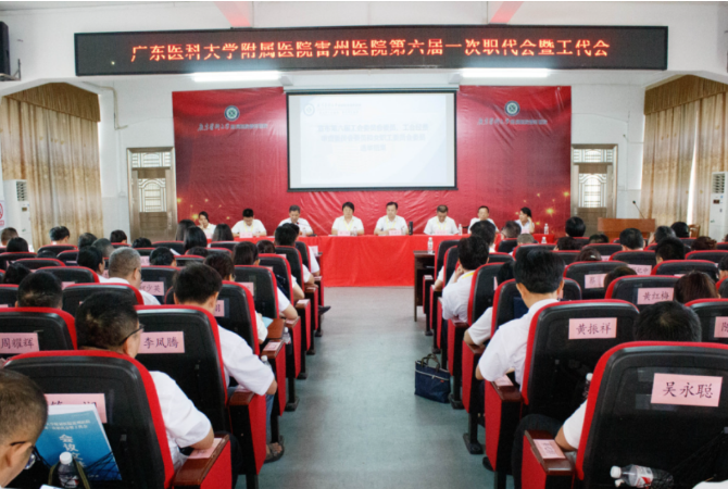 5月25日,广东医科大学附属医院雷州医院第六届一次职工代表大会暨工会会员代表大会召开。广东医科大学附属医院党委副书记、纪委书记郑苏林,雷州市卫生健康局副局长何位豪,雷州市卫生健康局主任科员周锋武,广东医科大学附属医院雷州医院党委书记黄娟,党委副书记、副院长(主持工作)李建昌及医院领导班子成员,职工代表及列席代表等200余人齐聚一堂,回眸2023年,绘就2024年医院宏伟蓝图,激励全院上下以“医疗服务能力全面提升,推进县域医共体建设”目标为旗,锚定“二年夯实基础,三年谋求发展,五年提升水平”的总体发展战略,持续加强管理体系和专科学科建设,坚持党建引领树航标,把准发展方向,坚持医院运行提质增效,奠定发展基础,坚持立足高水平县域医疗中心长远规划,夯实发展步伐,共同书写医院高质量发展新篇章!