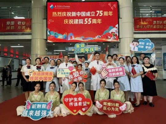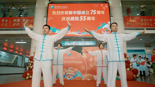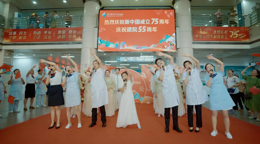 此次快闪活动由医院门诊部、团委等部门共同举办,进一步激发医务工作者强烈的爱国情感,以实际行动来庆祝新中国成立75周年国庆,庆祝建院55周年,向伟大的祖国送上祝福,让全院职工更加爱岗、爱院、爱国。