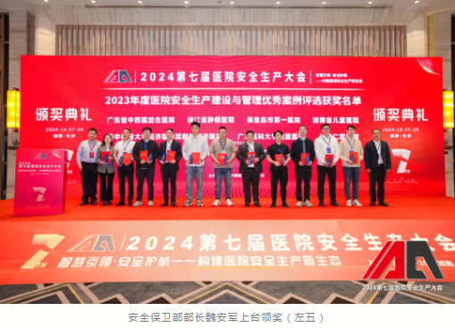 10月19日,以“智慧引领 安全护航——构建医院安全生产新生态”为主题的2024第七届医院安全生产大会在湖南长沙举行。会上公布了2023年度医院安全生产建设与管理优秀案例,并举行了颁奖仪式。医院安全保卫部申报的《医院危险化学品安全管理》获优秀案例奖。