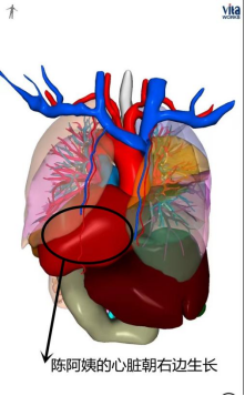 该现象引起了科室团队的高度重视,陈捷副主任和何湛教授仔细阅读陈阿姨的胸部增强CT片子,发现陈阿姨全器官反位,是个罕见的“镜面人”。她的左肺和右肺、心脏全都发生了镜像改变,并且位于左中肺近肺门区有不规则部分实性结节,有毛刺、分叶征、密度不均匀,考虑肺癌可能性大,需要进行手术治疗。