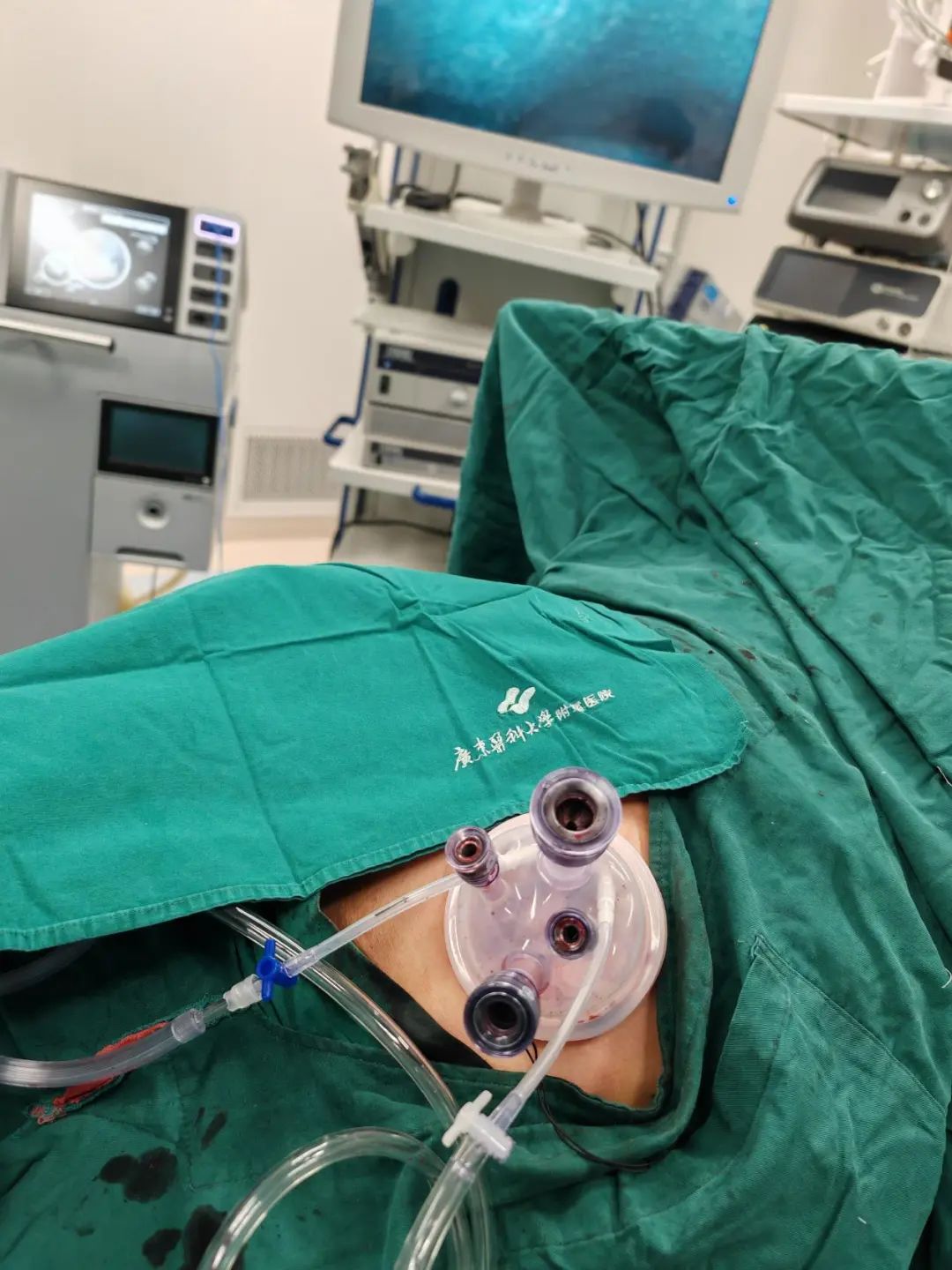 术前准备充分,在麻醉科、手术室团队协助下,在陈念平教授指导下,梁晓路博士顺利为其实施粤西首例“单孔腹腔镜肝癌切除术”。手术时间60分钟,出血量仅20ml。