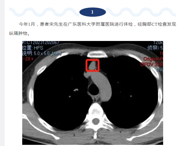 入院后,宋先生进行了各项术前相关检查,经胸外科专家团队讨论,考虑胸腺瘤可能性大,符合手术指征,与患者家属商议,决定由梁克主任医师带领团队选择达芬奇机器人辅助经剑突下入路切除纵隔肿物。该手术与传统手术相比有以下优势:1、剑突下切口减少了手术器械及胸腔引流管对肋间神经和胸壁肌肉的损伤,术后疼痛更轻,有利于术后快速康复。2、剑突下手术切口虽然小,但纵隔内视野更开阔,神经及血管显露清晰,达芬奇机器人机械臂灵活,能在保护重要器官的同时,彻底地切除肿物及清扫肿瘤周边组织。