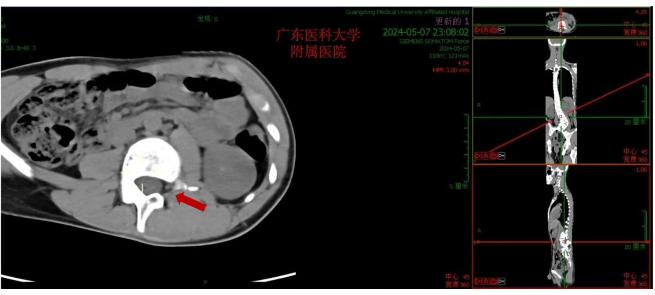 术前脊柱CT:见L2左侧椎弓根缺如