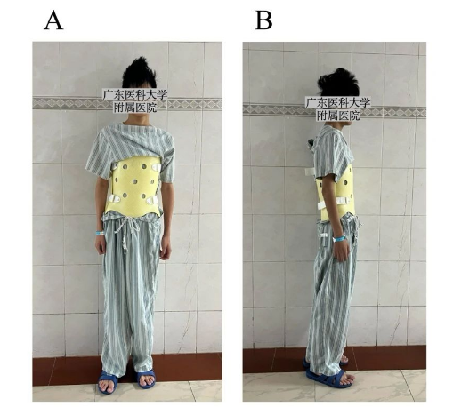 患者,男性,14岁,“被发现高低肩、脊柱侧凸1年余”入院,查体:步态正常。高低肩(右高左低),脊柱腰段向左侧侧凸,腰弯隆起。四肢皮肤感觉、肌张力、肌力正常。