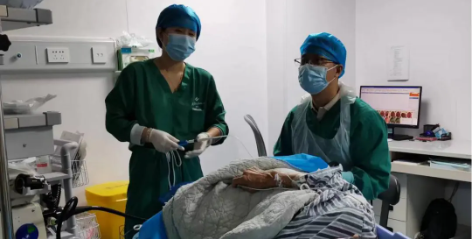 为了给患者提供创伤更小,且能够保留肛门功能的治疗方法,综合各种因素评估后,消化内科叶石才主任决定为患者实行内镜下直肠粘膜剥离术(ESD),达到病变整块切除目的。术前,叶石才主任经过充分讨论、经过多次手术预案的设计,和患者家人充分沟通,取得病人家属的充分理解,最终决定为患者实施内镜下黏膜剥离术(ESD)。这也是广东医附院粤西首例对如此之大、离肛门如此之近的病变进行内镜治疗的手术!