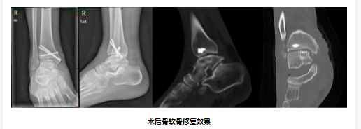 经过详细及周密的术前规划后,在钟环主任医师的指导下,黄华军博士后、欧阳汉斌博士后和王朝军主治医师组成的手术团队为该患者成功实施了“内踝双平面三维截骨联合髂骨骨膜骨移植修复距骨骨软骨损伤+距腓前韧带修补术”,完美复刻了术前的规划方案,提高了手术的效率及质量。目前陈先生已顺利恢复并出院。