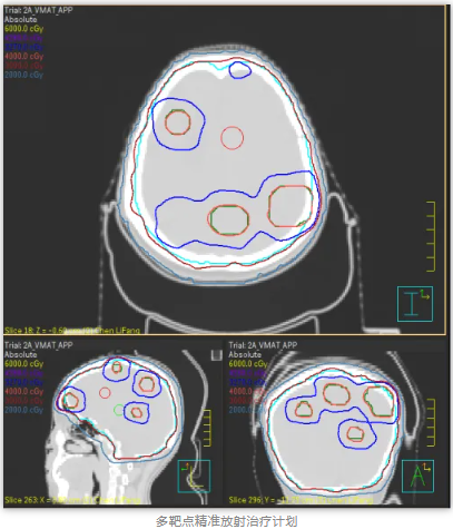 王女士最近很苦“脑”,发现肺部肿瘤复发转移到了脑部,新发病灶多达6颗。为提高放疗疗效、减少放射损伤,肿瘤科团队提出采用新近开展的 “多靶点精准放射治疗技术(MTPRT)”进行治疗。相较于全脑放疗而言,该技术不容易脱靶,能够更有效保护靶区外的正常脑组织,降低患者的副反应。