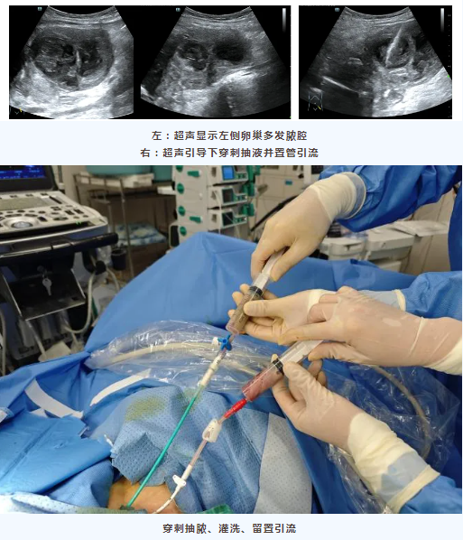 同时,周宏莲副主任医师及孔魏医师为月月实施了超声引导下盆腔脓肿穿刺抽脓、灌洗及置管引流。