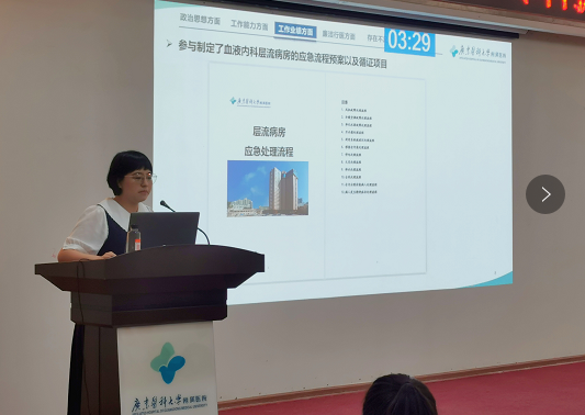本次汇报会由护理部副部长卜淑娟等7位专家担任评委。汇报会上,来自37个专科领域的70名专科护士分别以PPT形式从德、勤、能、绩、廉等方面,多角度地展示了她们在专科护士岗位履职、在临床护理实践、专科护理推广与引领能力、科研创新及自身学习等方面所做工作及取得成效,同时也反思了自己在工作中的不足,如科研创新能力不够等,并提出了下一步工作计划,汇报内容亮点纷呈。