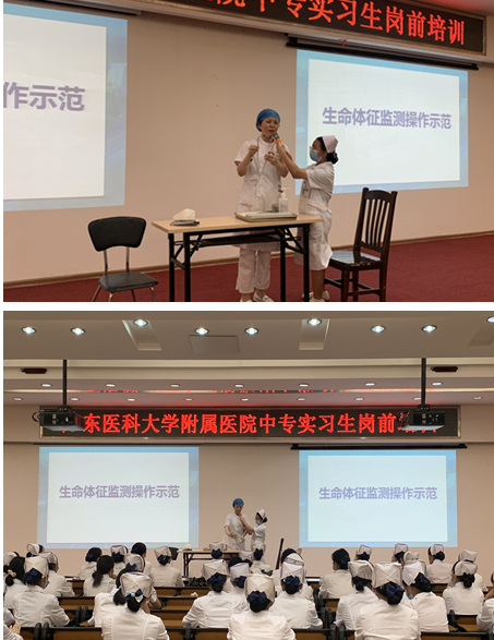 岗前培训分理论和技能培训两大部分。理论培训阶段,来自护理部、医院感染部、临床科室的相关科室的部长、护士长、教育护士、护理老师,围绕院感管理规范、实习生临床实习要求、护士条例、护理核心制度、危急重症患者的抢救配合等内容进行了详实的培训。