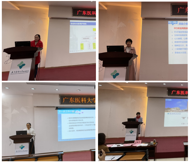 会上,各科室的汇报者对科室开展专科特色优质护理的项目做了精彩的八分钟总结汇报,项目内容丰富多彩,包括:构建全病程管理服务体系、开展护理新技术、中医特色护理、打造专科人文关怀文化、实行精细化管理等各个方面。项目效果显著,提高护理服务质量,促进患者疾病康复;而且科研方面取得可喜的成绩,产出部分课题、论文及专利等。经过2个多小时的精彩角逐,最终康复医学科获得一等奖,胃肠肛肠外科和心胸外科中心获得二等奖,中医科、冠心病专科和妇科获得三等奖。
