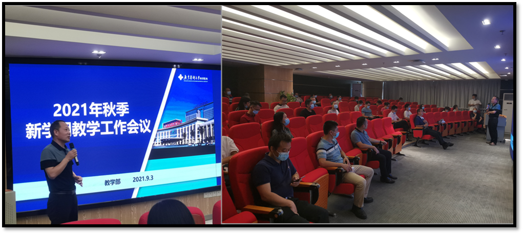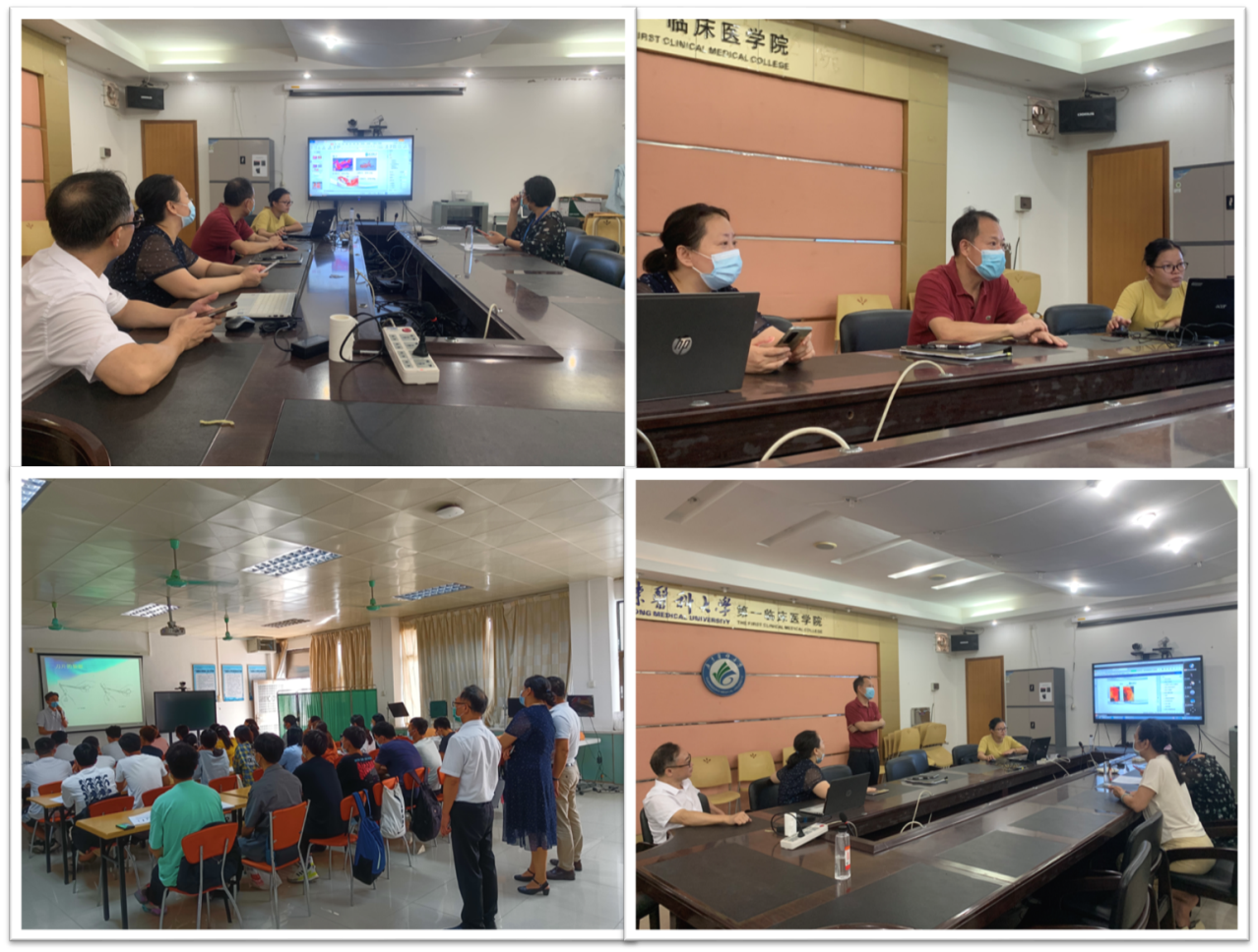 2021年8月27日,召集各系、教研室秘书集中参加新学期教学准备会议,会上下达新学期开学的具体任务。在开学前一周,对本学期承担教学任务的教研室进行细致的走访和检查,明确20个授课教研室均完成了线上、线下课程的准备工作和集体备课、试讲的任务,并一对一的抽查在了第一周、第一天授课的35教师的开课准备情况,从而确保其可胜任线上及线下的授课工作;同时对11个将会在本学期进行混合式教学模式改革的检验室进行了相关指导。2021年9月3日,组织召开第一临床医学院新学期开学动员暨系、教研室主任会议。会议在反馈检查情况基础上,提出了需要及时整改、保证教学零差错的要求,并再次强调了重视疫情防控工作。