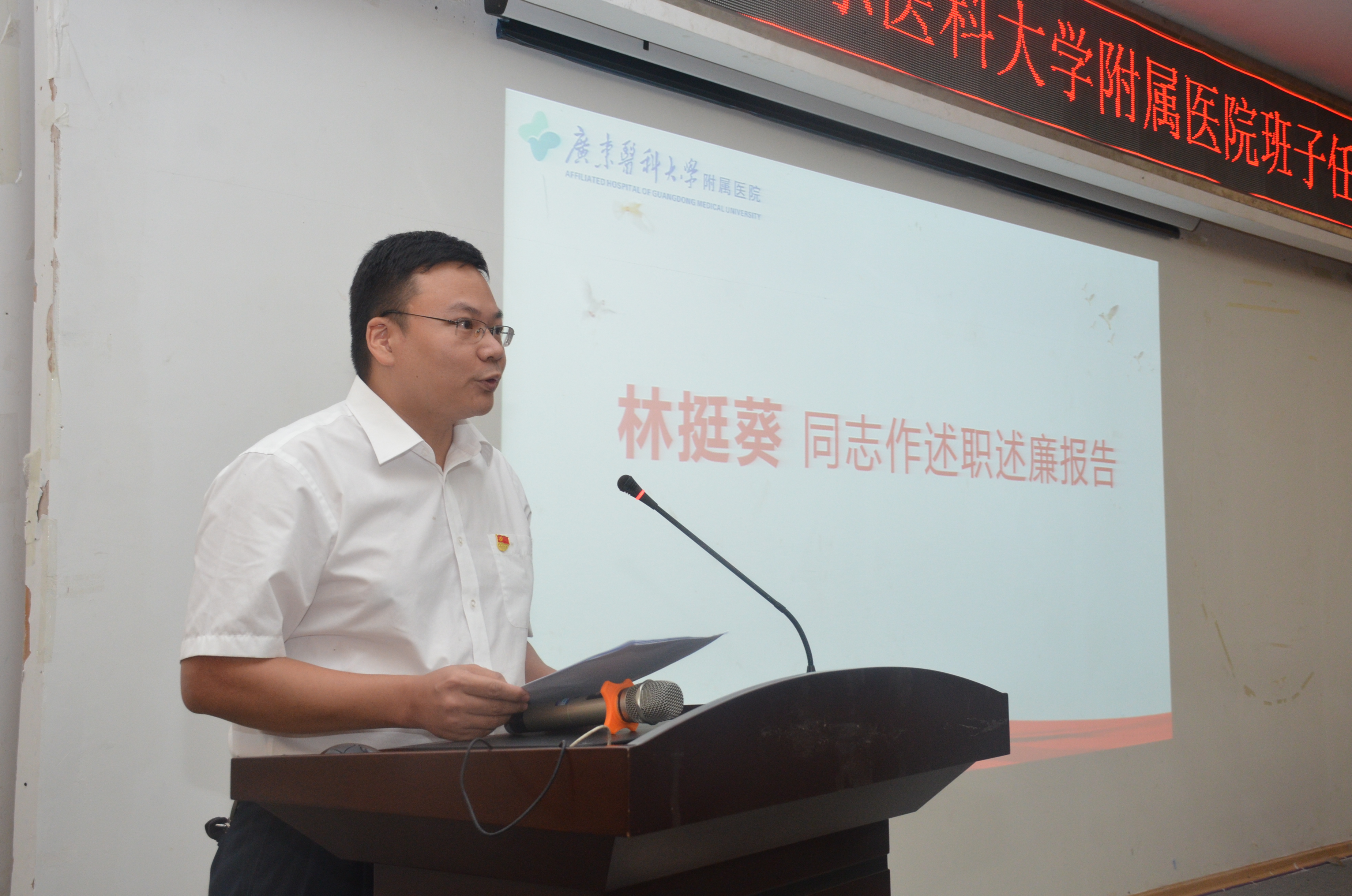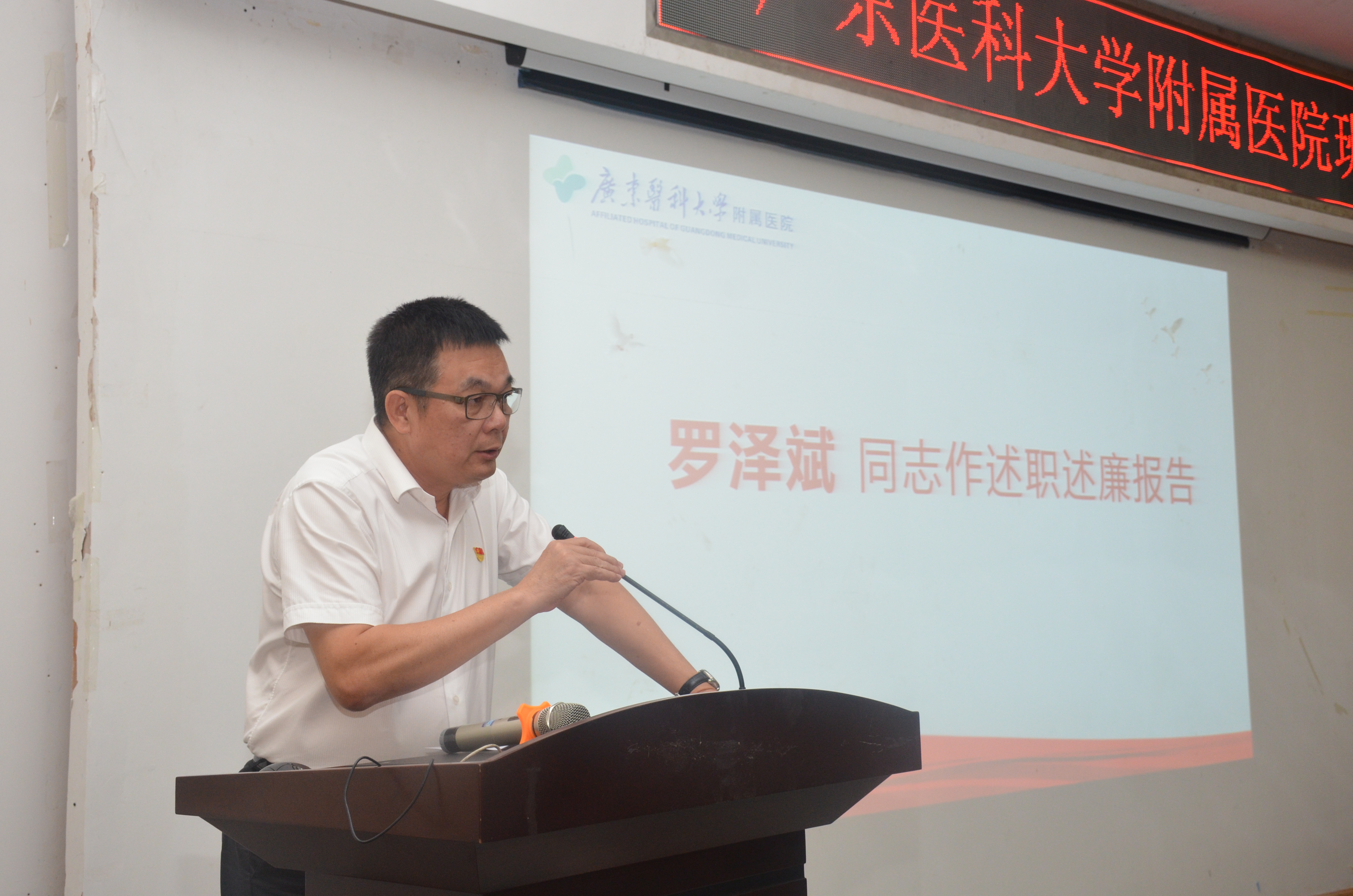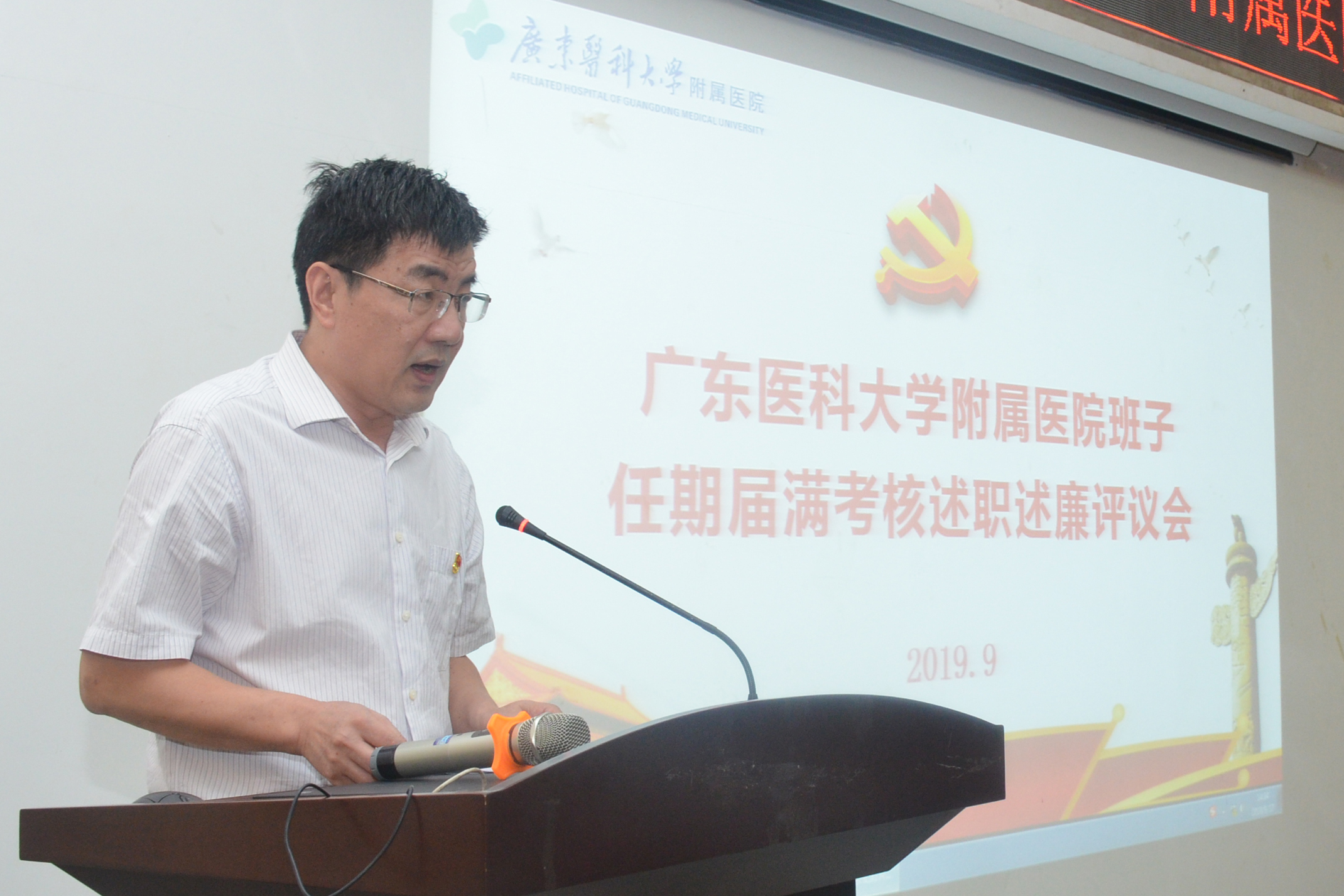 9月17日,医院召开领导班子任期届满考核述职述廉评议会,党委常委、组织部部长谭平,组织部副部长蔡丽明,纪委办公室、监察处科长罗海燕,组织部副科长王建军,组织部副科长杨晓聪,医院领导班子、各党支部书记、中层干部、各民主党派主委参加会议,广东医科大学党委副书记罗辉主持会议。