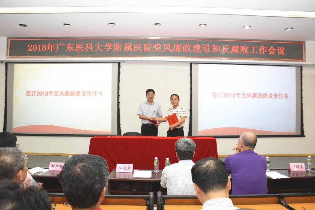 会上,李明意同志还分别与副职院领导代表张良清同志、党支部书记代表黎东明同志签订了《党风廉政建设责任书》,分管院领导代表刘华锋同志与其分管的临床科室主任代表谭建新同志签订了《党风廉政建设责任书》。(文、图/陈冰倩     审/郑春凤)