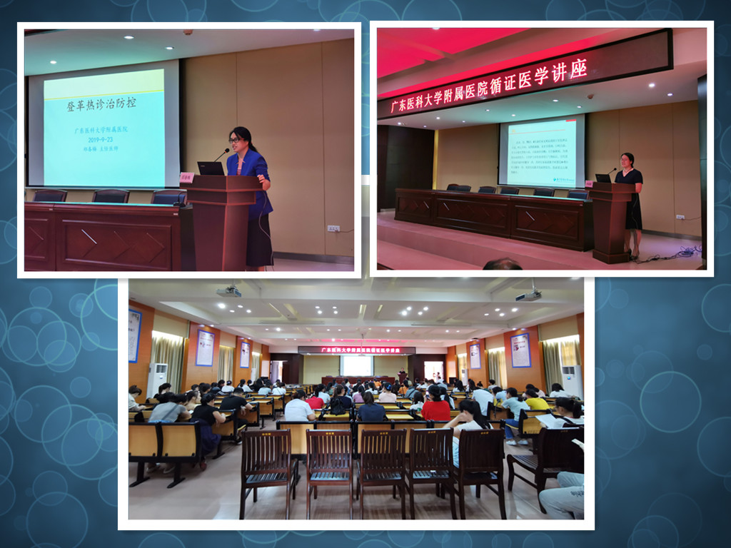 23日下午3时,三江县中医院组织本院医护人员参加由我院感染内科主任医师郑春梅主讲的“登革热的防治”和神经外科主任护师李春霞主讲“循证医学”两场专题学术讲座,两位专家对现场医护人员提出的问题给予细致的解答。