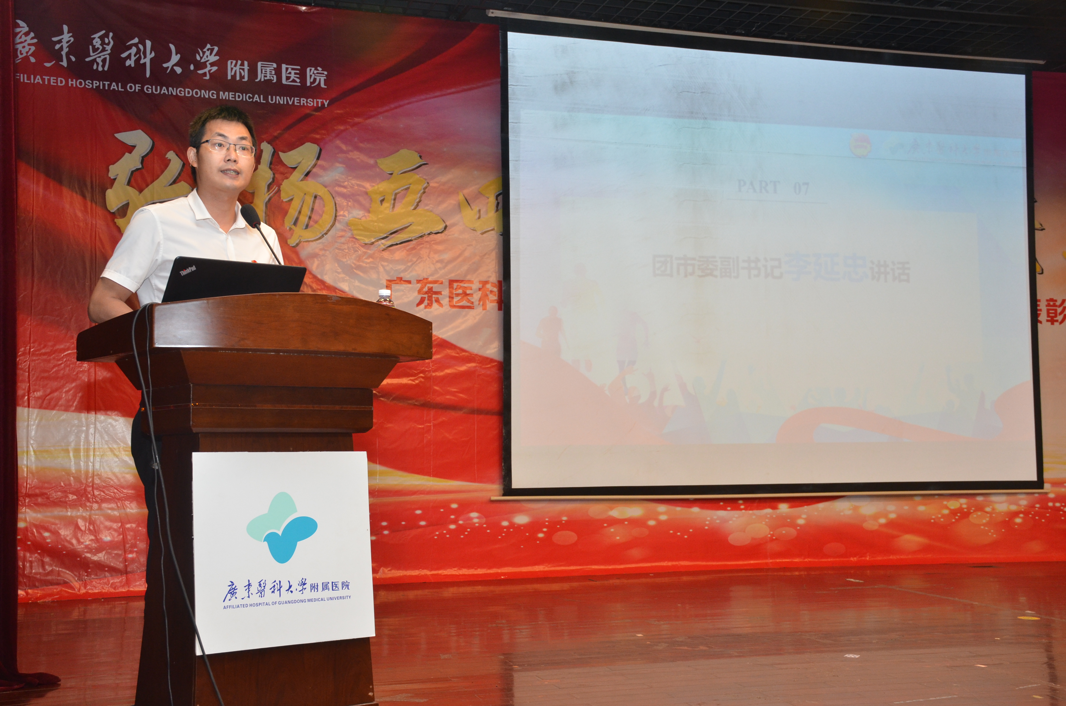 团市委副书记李延忠对我院团委工作给予了高度评价,并向我院广大青年团员致以节日祝贺和亲切慰问,向获得表彰的同志表示祝贺,向辛勤工作在医院各岗位、为医院建设与发展付出努力与汗水的青年朋友们表示敬意。他对医院团干和团员青年们提出寄望:一是铭记历史,坚定信念跟党走;二是加强学习,练就过硬的本领;三是走出医院,传递更多正能量。