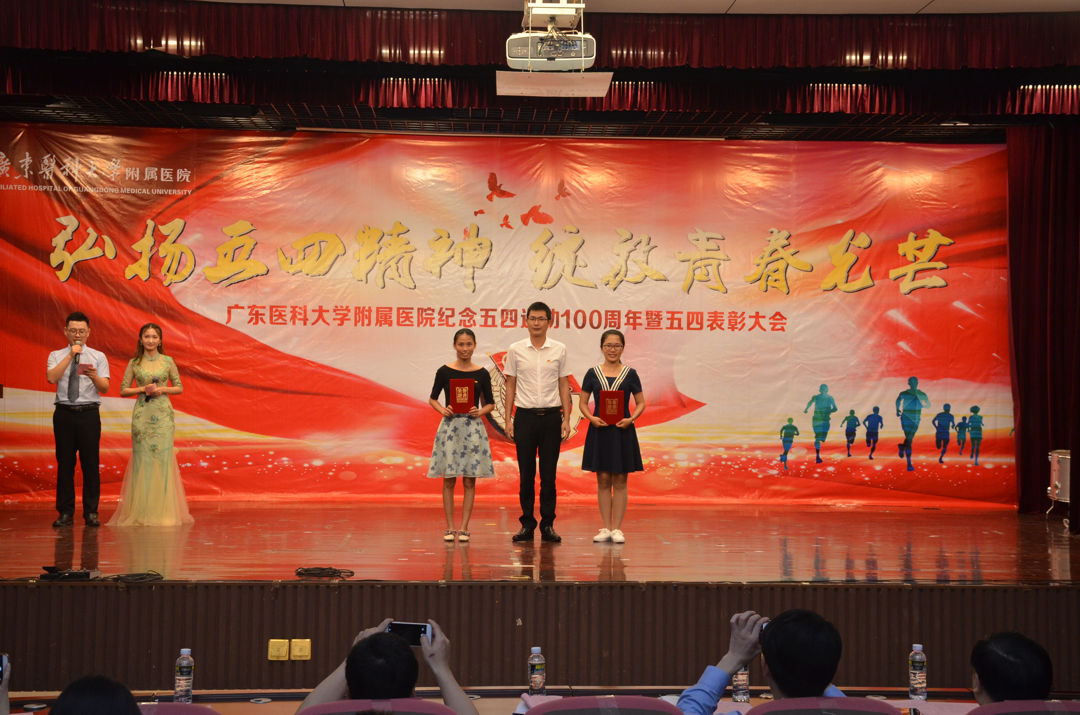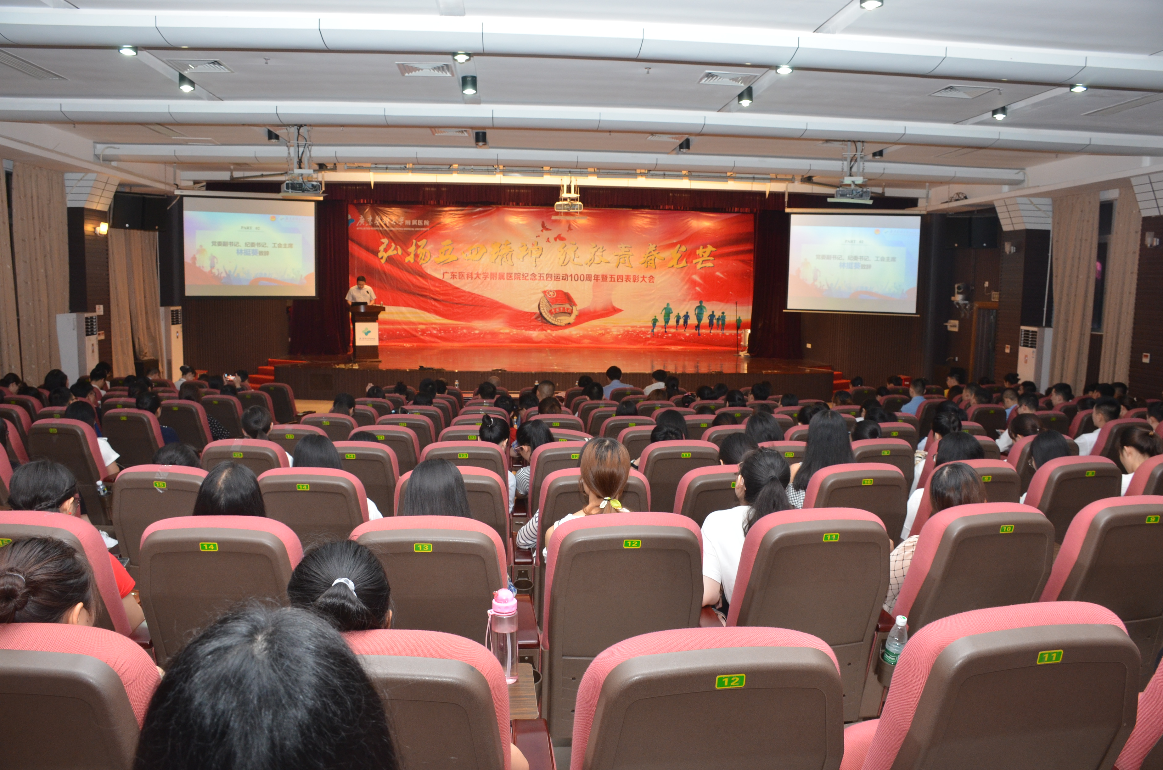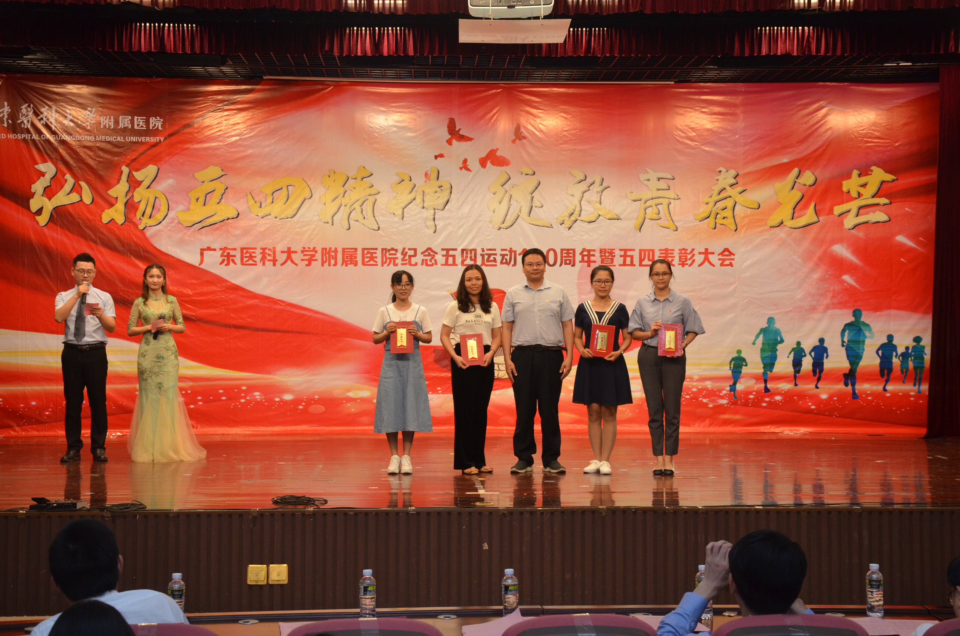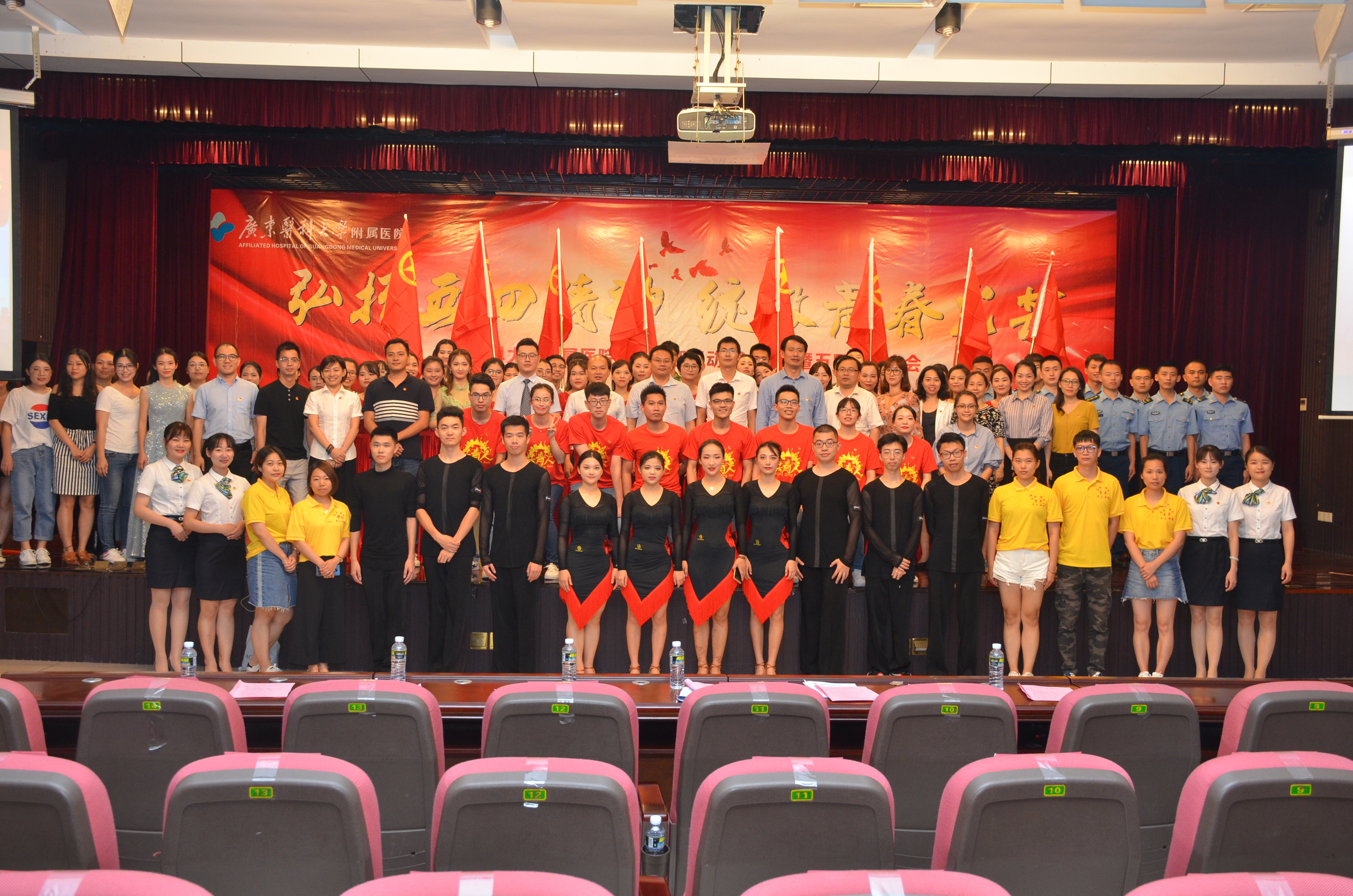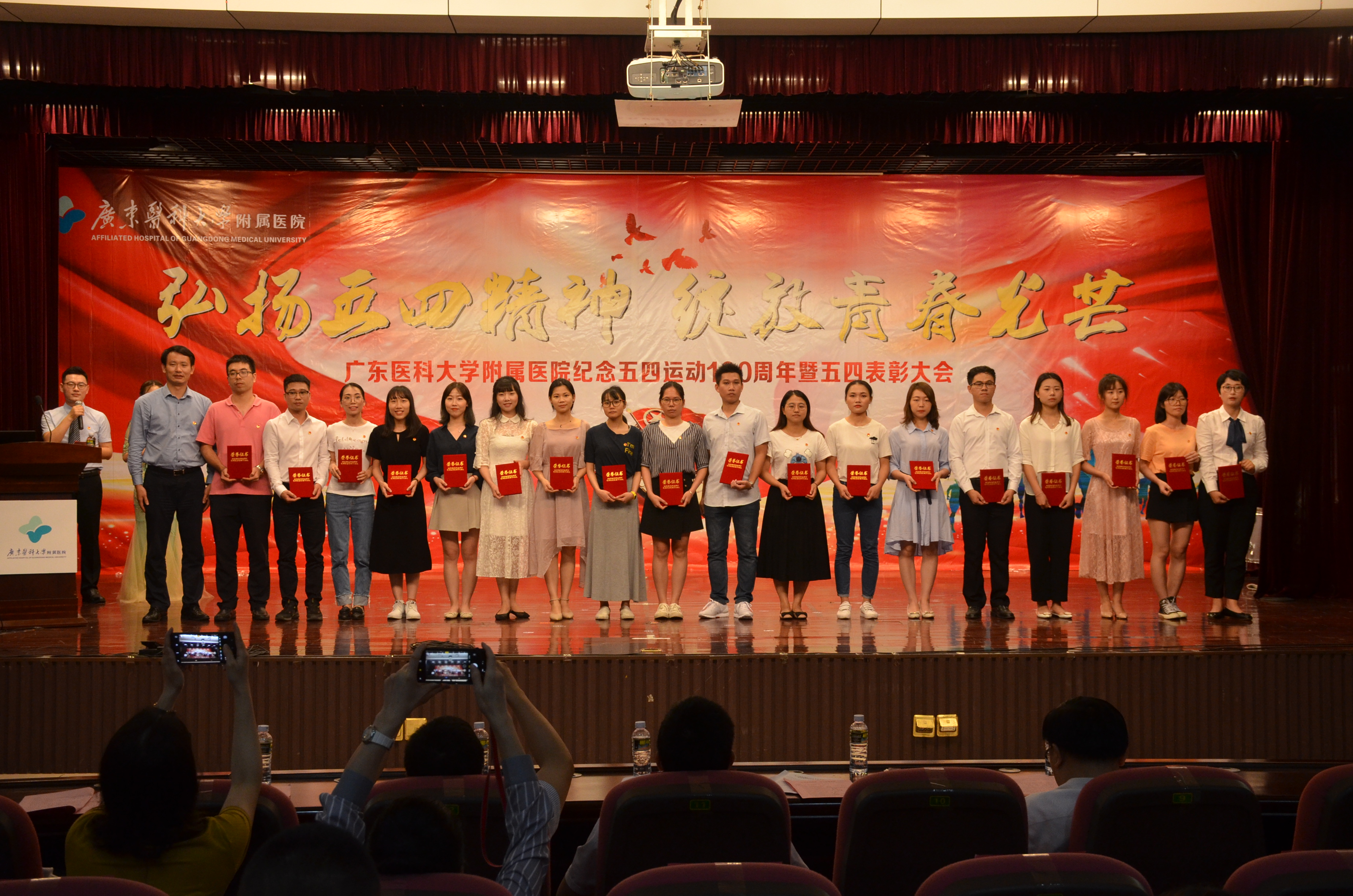 月25日晚,我院在广东医科大学湛江校区举行“弘扬五四精神·绽放青春光芒”纪念五四运动100周年暨五四表彰大会。共青团湛江市委副书记李延忠,医院领导,临床科室主任代表、职能部门负责人代表,党支部书记代表,全体团干、团员青年代表,义工代表以及学生代表参加会议。