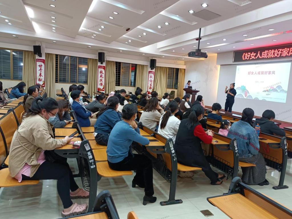 为深入学习贯彻习近平总书记关于注重家庭家教家风建设的重要论述,进一步推动《家庭教育促进法》落地生根,医院工会于2023年3月6日晚在行政综合一楼学术报告厅举办“好女人成就好家风”知识讲座。爱自然生命力体系粤西分院院长、茂名市茂南区家庭教育协会会长、茂名市茂南区家庭教育协会妇联主席车开娣、爱自然生命力体系中级导师、高级家庭教育指导师梁丹及我院女职工代表等100余人参加了活动。