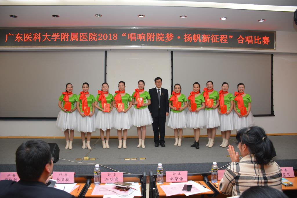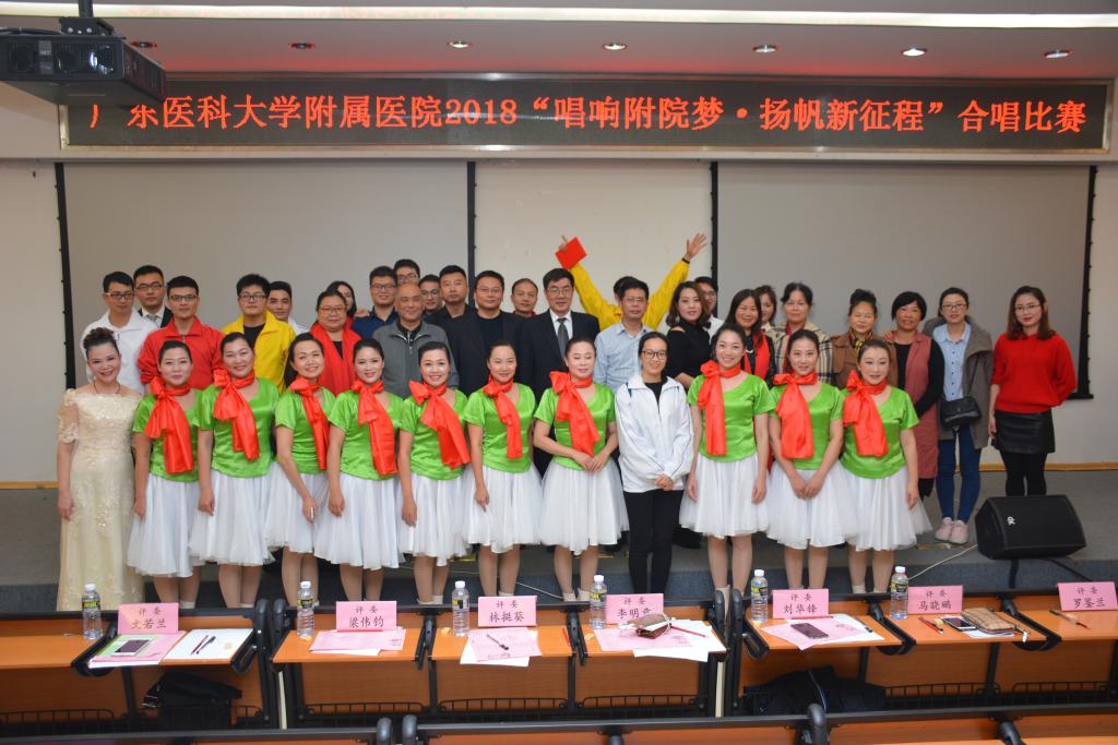 盛世抒豪情,激越写华章,12月18日晚,“唱响附院梦 扬帆新征程”医院工会小组合唱比赛在学术报告厅举行,来自医院各职能部门、临床(医技)等200多名教职工用美丽的歌声表达着迈进新时代、履行新使命、开启新征程的万丈豪情,并用实际行动学习贯彻落实党的十九大精神、习近平总书记视察广东讲话精神,向我国改革开放40周年华诞献上一份厚礼。医院党委书记、院长李明意,党委副书记、纪委书记、工会主席林挺葵,副院长刘华锋,调研员梁伟钧,工会常务副主席文若兰、宣传部部长马晓鹂、离退休管理部部长罗鉴兰出席活动并担任合唱比赛评委。