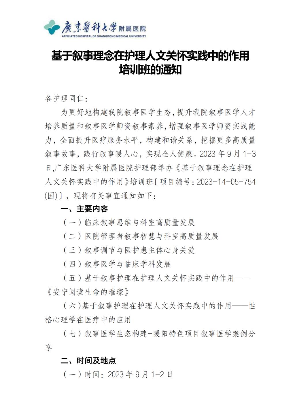 基于叙事理念在护理人文关怀实践中的作用培训班的通知