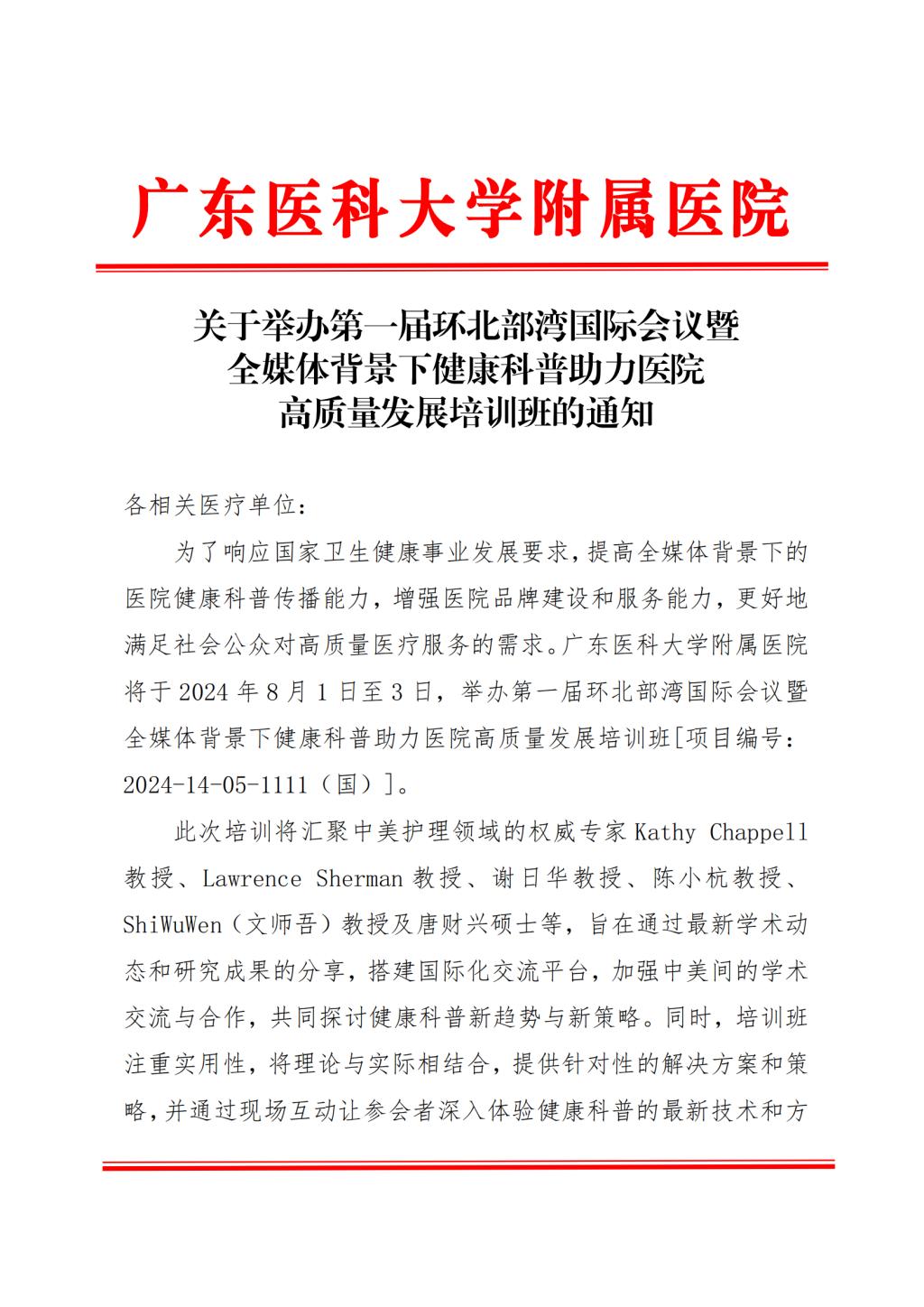关于举办第一届环北部湾国际会议暨全媒体背景下健康科普助力医院高质量发展培训班的通知