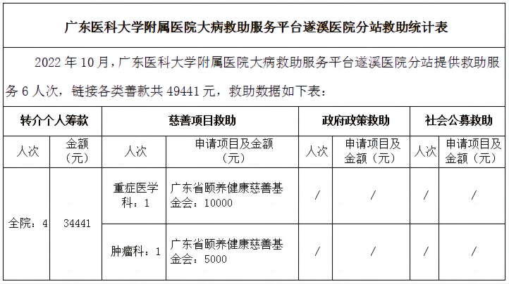 5、宁养服务项目:为湛江市大部分地区的贫困晚期癌症患者免费提供镇痛药物、心理疏导、居家护理指导等服务。(该专项请咨询宁养专线0759-2387588)