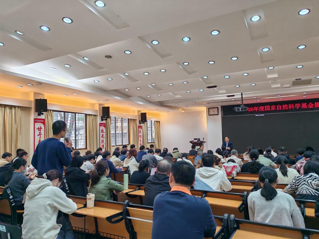 12月2日,广东医科大学附属医院科研部于行政楼一楼学术报告厅举办了2026年度国家自然科学基金提升系列讲座(第三期)。此次会议特邀香港中文大学蓝辉耀教授进行现场指导,其目的在于提升科室临床医生与科研人员的申报能力,提高申报书质量,为申报工作奠定坚实基础。会议由科研部部长马晓瑭主持,约300人参与了此次会议,其中包括本院2026国基金青年重点培育人员、2026国基金拟申报人员、博士、临床医生、研究生以及院内其他对此感兴趣的人员。