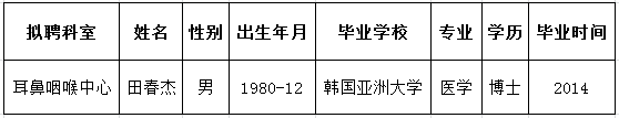 根据我院业务发展需要,按照公开、公平、公正的原则,对符合引进条件的人员进行了相关考核。经医院院长办公会、党委会讨论,拟对引进的博士予以公示。公示期:2022年3月31日至2022年4月6日止,公示7天。如有异议,请在公示期间向医院纪检监察室或高层次人才办公室书面反应情况。
