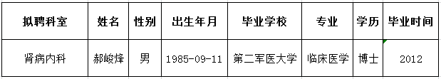 根据我院业务发展需要,按照公开、公平、公正的原则,对符合引进条件的人员进行了相关考核。经医院院长办公会、党委会讨论,拟对引进的博士予以公示。公示期:2021910日至2021916日止,公示7天。如有异议,请在公示期间向医院纪检监察室或高层次人才办公室书面反应情况。