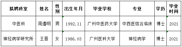 广东医科大学附属医院拟引进博士人员名单公示