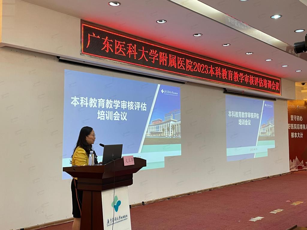 2023年8月24至26日,2023年广东医科大学附属医院本科教育教学审核评估专项培训会在我院顺利举办。教学部经多方联系和积极组织,邀请到了国家本科教育教学审核评估专家——广西科技大学医学部文玉萍部长、周容主任抵湛对我院的本科教育教学审核评估工作进行了现场培训和多场次指导。我院各系、教研室主任、教学秘书及教学骨干积极参加了本次培训会。