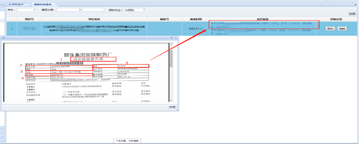 命名示例:注射用艾普拉唑钠成品检验报告单(规格:10mg;批号:210608;有效期至:2023年5月)