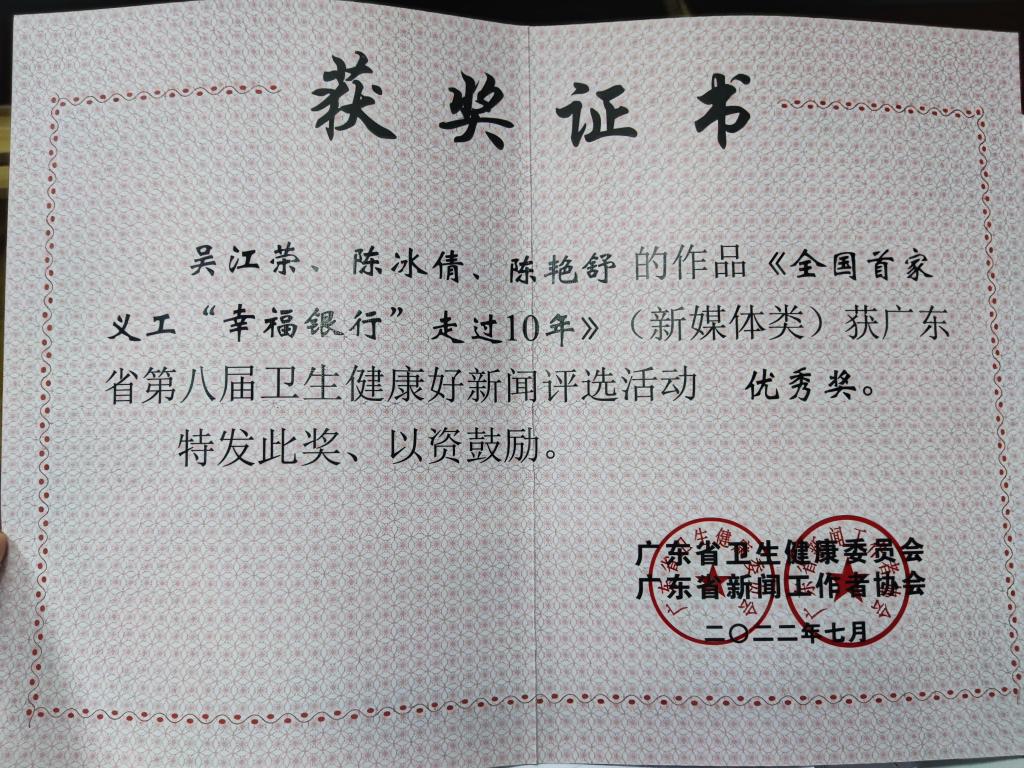 日前,广东省第八届卫生健康好新闻获奖名单揭榜,广东医附院一篇新闻作品上榜,获新媒体类优秀奖。 由医院党委宣传部和社会工作部联合出品的新闻作品《全国首家义工“幸福银行”走过10年》(作者:吴江荣、陈冰倩、陈艳舒)详细介绍了义工“幸福银行”十周年发展历程,充...2022-11