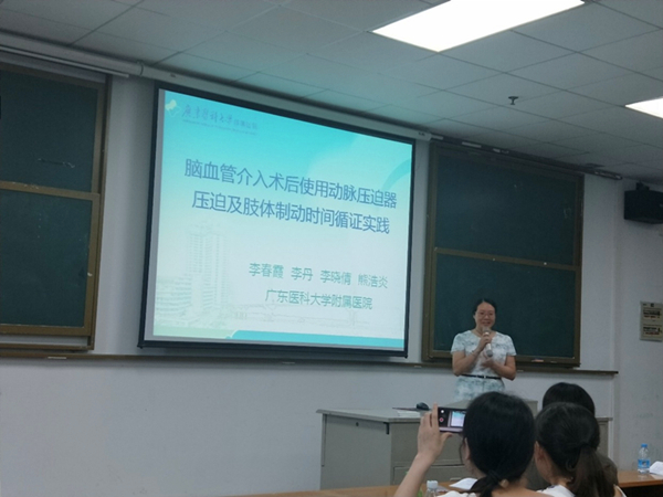 2017年10月9日至12日,我院护理部选派护士长李春霞、护士钟一岳、陈海婷参加了广东省护理学会循证专业委员会在南方医院举办的循证护理与实践培训班暨中英合作循证护理与科研培训班。其中李春霞护士长被聘为广东省护理学会循证护理专业委员会常务委员;李春霞的《脑血管介入术后使用股动脉压迫器压迫及肢体制动时间循证实践》及钟一岳的《基于循证下ICU患者中心静脉导管相关血流感染影响因素的研究》、《APSIC预防中心静脉导管相关性感染指南在ICU的实践研究》作为优秀成果在大会上进行汇报。