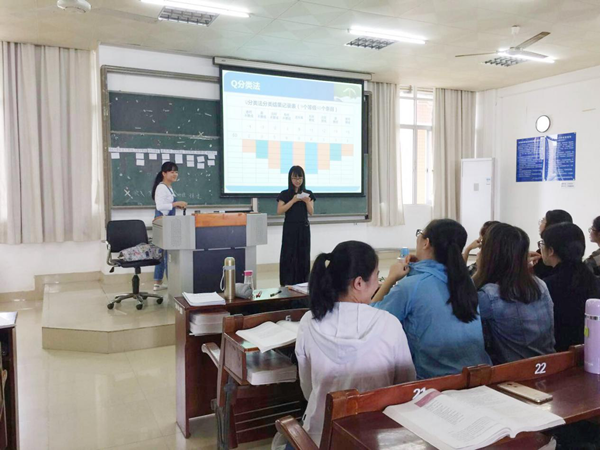 课堂上吴小玲老师在教授资料收集方式时,让学生们通过亲身实践来体验Q分类法。33名学生随机分成五个小组,每组设计10到15条调查问卷条目。期间,同学们展开了激烈的讨论,课室仿佛充满了“思维”碰撞的声音,各种新奇的“想法”在空中漂浮。《护理研究学》这门抽象而乏味的课程,瞬间“活”过来了,笑容绽放在所有人的脸上。