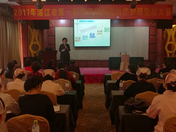 为了促进癌痛规范化管理事业的发展与进步,为提高癌症患者生活质量,展现护理在癌痛全程管理的技能,提高患者的就医满意度,广东省抗癌协会癌症康复与姑息治疗专业委员会粤西护理分会承办的“湛江市第一届癌痛规范化治疗护理竞技大赛”于 12月 10日下午在湛江市恒逸国际酒店桂花厅举行。来自全市已建立癌痛规范化治疗示范病房的10家医院参与了本次的竞技大赛。