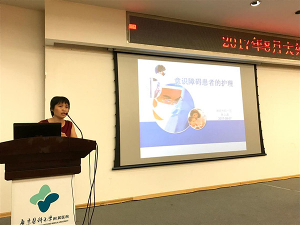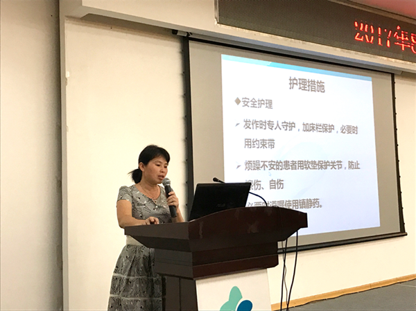 李爱文和林上清老师分别主讲了“癫痫病人的护理”及 “意识障碍的护理”,她们从相关定义、意识障碍的类型及护理的注意事项详细地进行讲解。老师们 绘声绘色、图文拼茂的精彩讲课和轻松活跃的气氛赢得了台下同事们的好评。