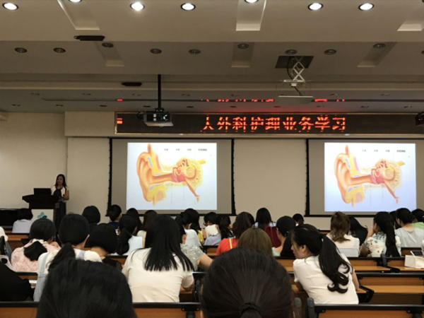授课老师五官科梁煜程主任护师,以图文并茂地跟我们讲述了突发性耳聋的病因及护理,还有预防性的措施等。接着陈纯柳副主任护师详细地从管道的分类、护理原则,还有管道常见的问题--脱管的护理等方面,给我们上了一堂精彩的课程。通过本次业务学习从整体上提高了护士的知识水平和业务能力,对持续改进护理质量有着积极的促进作用。(文/图 陈晓君/杨晓吟 五官科)