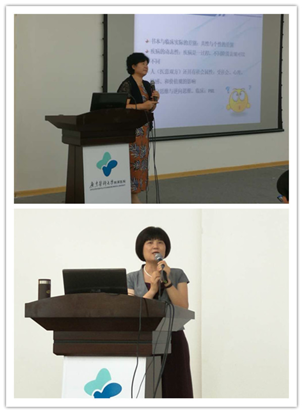 整形外科护士长梁小玲、肿瘤中心二区教学秘书孙碧兰老师授课