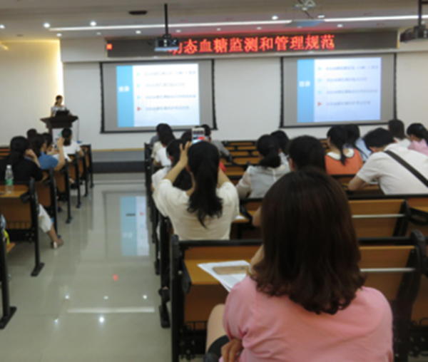 4月11日下午16时15分,糖尿病专科护理小组在会议大厅举办以动态血糖监测系统的运用及管理为主题的培训会,糖尿病专科护理小组的核心成员、联络员以及护理骨干共60余人参加。