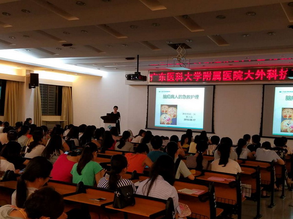 为了进一步提高临床护理人员的理论知识和专业技术水平,大外科护理组于2016年8月17日晚19时在行政楼报告厅举行护理业务授课。担任此次的授课老师分别是来自颅脑外科一区的林上清副主任护师和来自颅脑外科二区的李爱文副主任护师,各专科护理人员约有100余人参加了本次学习。