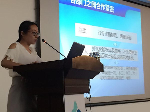李珍护师结合了自身在邵逸夫医院进修的所见所闻所感向大家介绍了该医院护理工作的五大亮点,包括全电子信息化系统、床边综合能力考核、全面到位的健康教育模式、醒目方便的标识、一日住院病人(实现冠脉介入患者当日出院)。