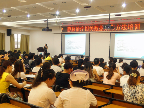 为适应现代化护理学模式,护理人员不仅要具备整体的护理观念,而且要有意识的采集资料,建立相关的数据库,然后不断地进行对比和统计分析,从而能寻找到更有效的方法为病人提供全方位、全过程的优质护理服务及静疗质量。同时,也为培养护士的科研能力奠定了坚实基础,2016年6月8日在学术报告厅对静脉治疗小组联络员、护理骨干、护士长进行了有关知识的培训。此次培训邀请了血液内科护士长梁仁瑞主任护师和专科护士龚声珠主管护就“静疗相关资料采集方法及数据库的建立”和“静疗个案收集方法与分享”用图文并茂及个案分析的方式将她们的宝贵经验传授予每一位学员,让学员们更清楚、直观的了解及掌握静疗相关资料的采集方法并建立有关的数据库。