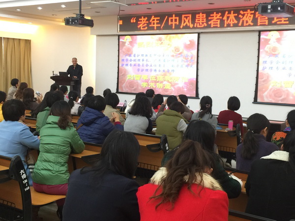 2015年12月19日,广东省护理教育中心省继教项目“2015 年度老年/中风患者体液管理研讨班”在我院召开。来自佛山、广州等医院的护士长、护理骨干等共计100多人参加了本次学习,邀请了广东省护理教育中心主任、广东省护理学会副理事长、广东省护理学会老年护理专业委员会主任委员、南方医科大学护理学博士生导师刘雪琴主任护师来我院讲学。我院党委书记、代院长陈灿致开幕词,高度赞扬了广东省护理学会走专科发展道路的战略眼光,并对老年/中风研讨班以及老年卒中专科团队建设予以肯定,希望大家积极进取,相互交流,进行思维碰撞与知识的互补,紧跟专科发展步伐。
