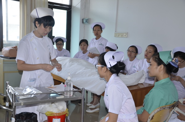 本次护理培训采取理论授课、电子病历护理文书书写演示、操作录像、经验交流、技能操作示范与训练、理论及操作考核等多种形式。理论授课主要对11项护理工作核心制度进行了详细的讲解,另邀请了2012届的急诊科“男丁格尔”刘海,2013届心胸外科护士李晓倩就工作的经验、沟通技巧等方面进行了工作心得交流。